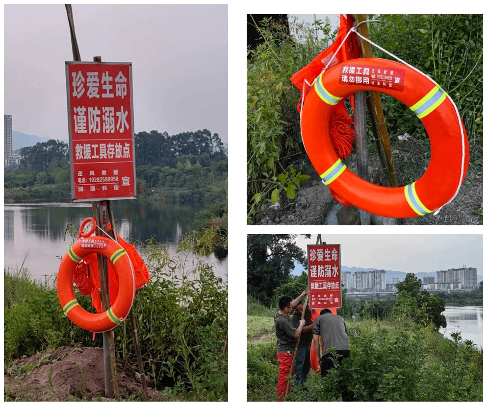 集團安全管理工程師張德洪和逆風救援隊一同針對雙福、圣泉街道溺水事件高發(fā)的河、湖、水庫地理位置進行勘察考證,并于8月中旬,在所有區(qū)域設置10余個防溺水警示牌和救生工具點,投放救援工具百余件,全力守護防溺水“最后一道防線”,構筑鞏固防溺水安全屏障。